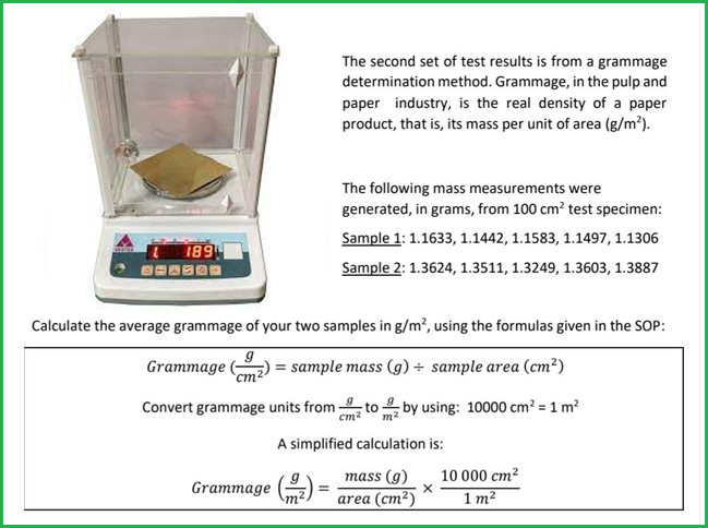 – Với một số loại giấy và carton thì sau khi cắt, diện tích mẫu thử không đạt được độ chính xác như quy định. Lúc này cần phải xác định diện tích của từng mẫu thử riêng biệt. Tính toán dựa trên các giá trị đo chính xác đến 0.5 mm.