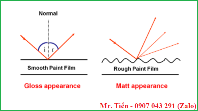 – Sau khi sơn khô, máy đo phản xạ (Reflectometer) hoặc máy so màu quang phổ (Spectrophotometer) được sử dụng để đo lượng ánh sáng phản xạ lại từ các vùng màu đen (RB) & vùng màu trắng (RW).