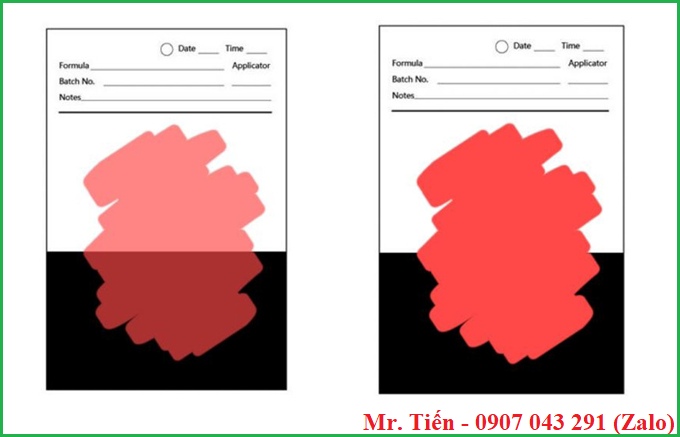 – Sơn trên nền có độ tương phản cao (ví dụ đen – trắng) sẽ dễ đánh giá độ che phủ hơn.